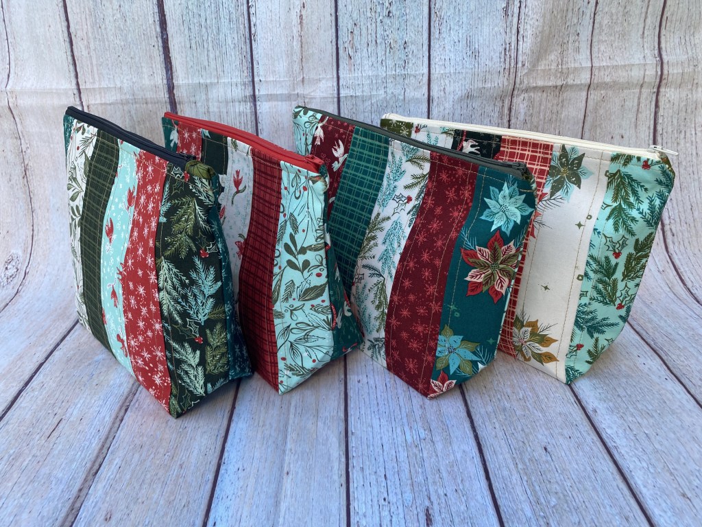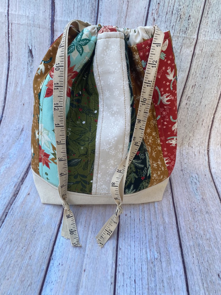 I’ve made several different styles of bags; open topped buckets, zippered project bags, and drawstring project totes. I have fabric wine bottle totes on the way. All of these would make great Holiday, Christmas, Teacher, and Hostess gifts.